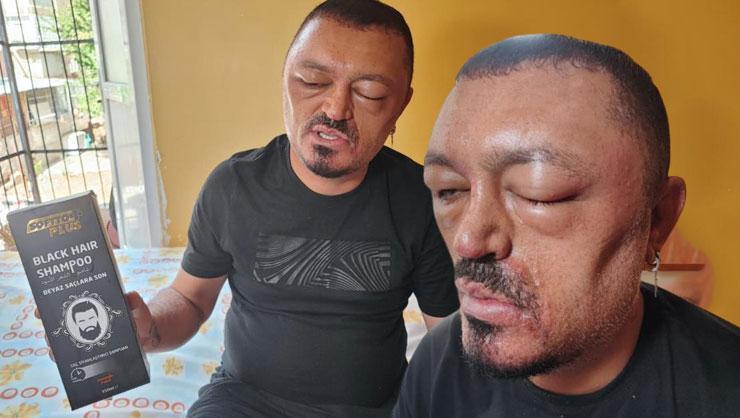 Adana'da yaşayan Murat Gözde (48), berber tavsiyesi üzerine internetten satın aldığı saç siyahlaştırıcı şampuanı kullandıktan sonra yüz ve gözünde şişlikler oluşup kafasında yara çıktı. Gözde, şampuanı üreten firmadan şikayetçi oldu.
