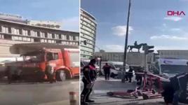 güvenlik kamerası görüntüleri ortaya çıktı. Görüntülerde; büyük bir hızla sokağa giren kamyonun 15 araca çarpması ve ardından yaşanan panik yer aldı.